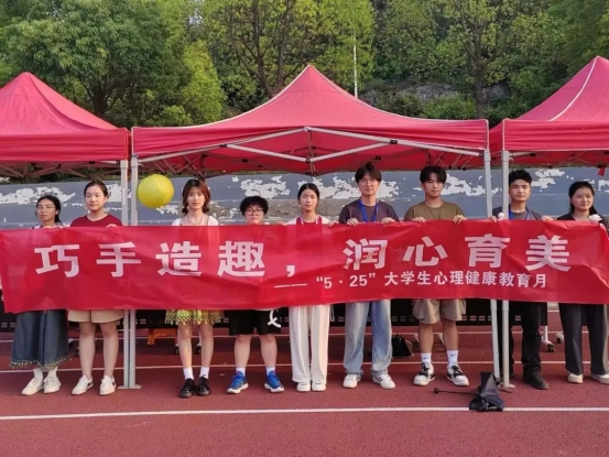 为培养学生的审美情趣和动手能力,展现tyc5997太阳集团的专业特色。tyc5997太阳集团分团委学生会心理协调部于5月24日在听涛操场承办了“5·25巧手造趣,润心育美”活动。让学生在手工制作中激发兴趣,在动手实践中释放压力。本次活动包括“泥塑心灵”“风车寄心”“扭扭棒静心”“纸玫瑰传心”等项目。