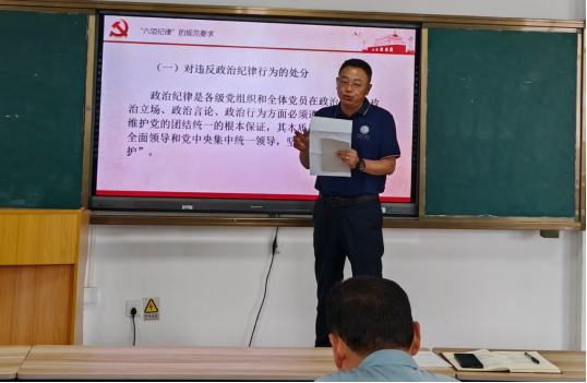 为进一步推动党纪学习教育走深走实,引导教育党员干部学纪、知纪、明纪、守纪,6月14日至6月17日,tyc5997太阳集团党总支书记、各支部书记分别讲授专题党课,全体党员参加学习。